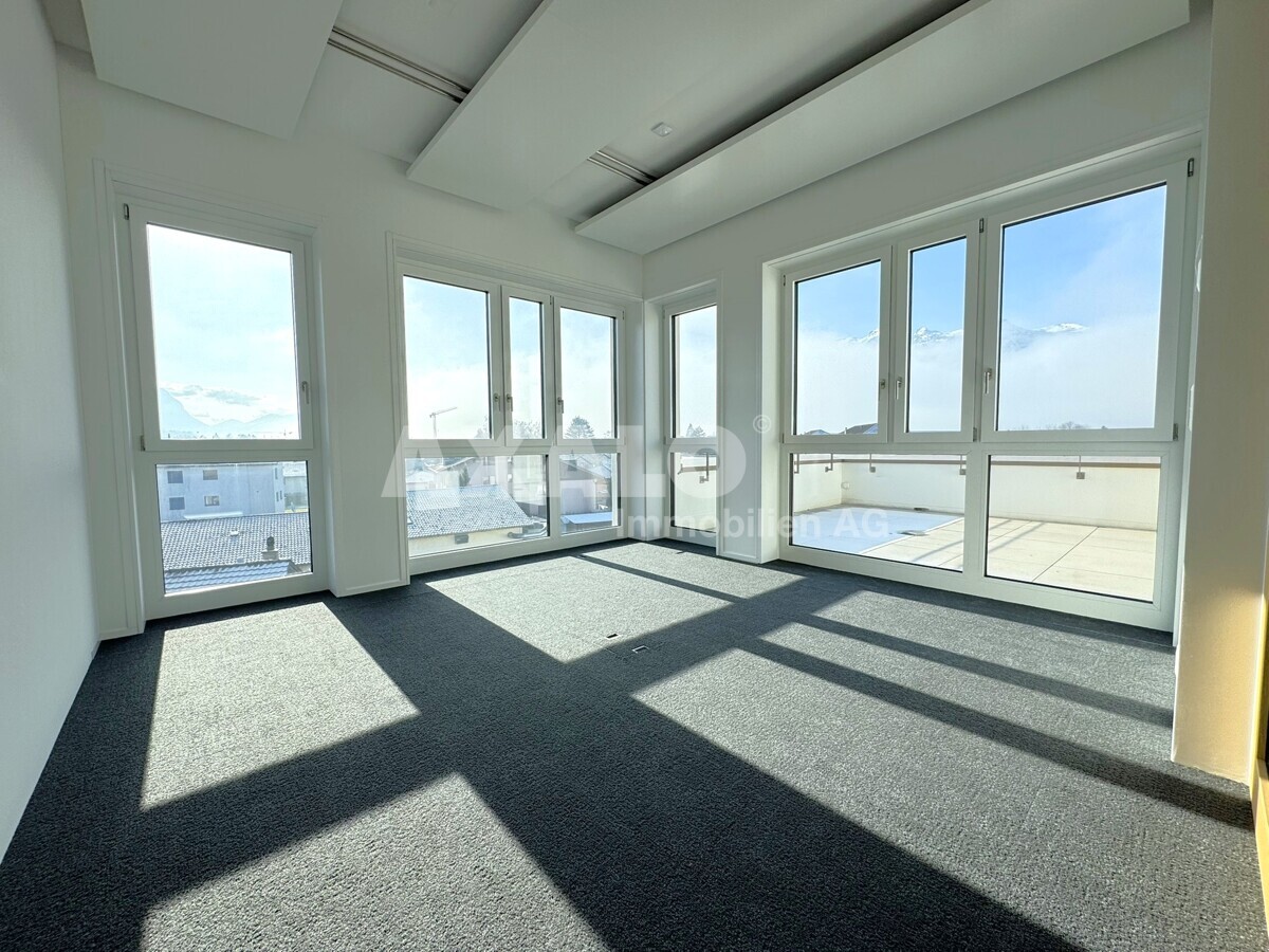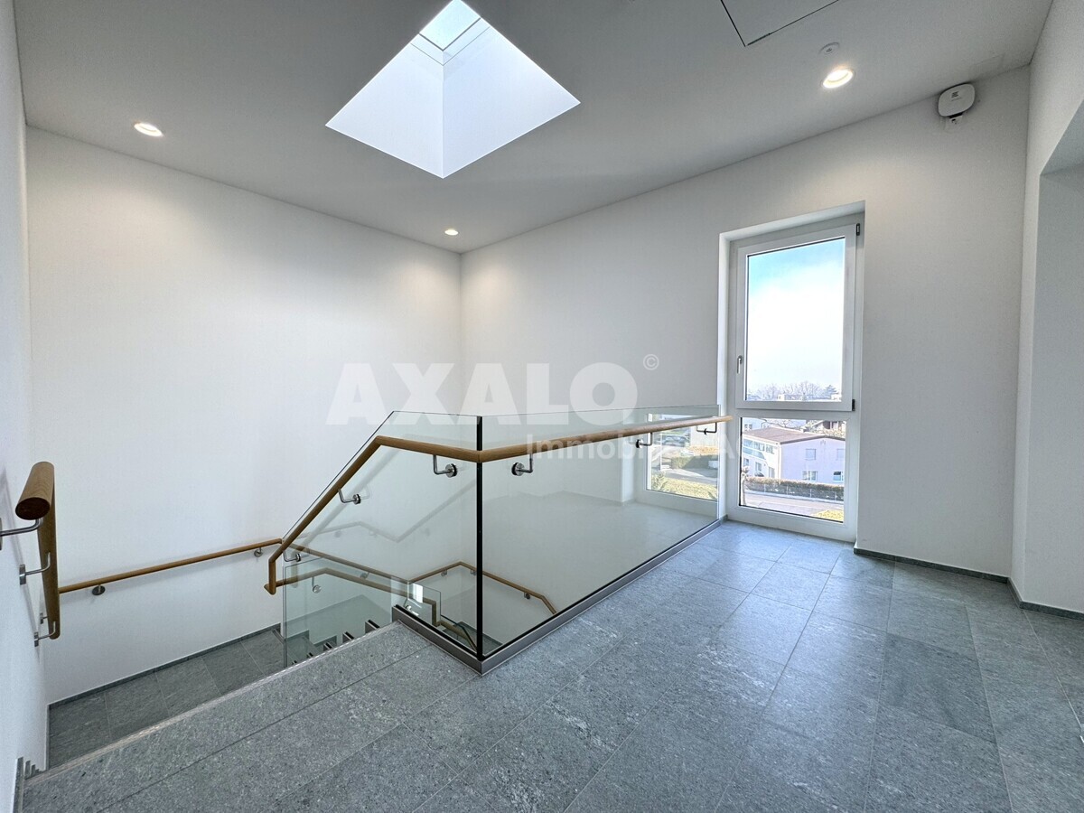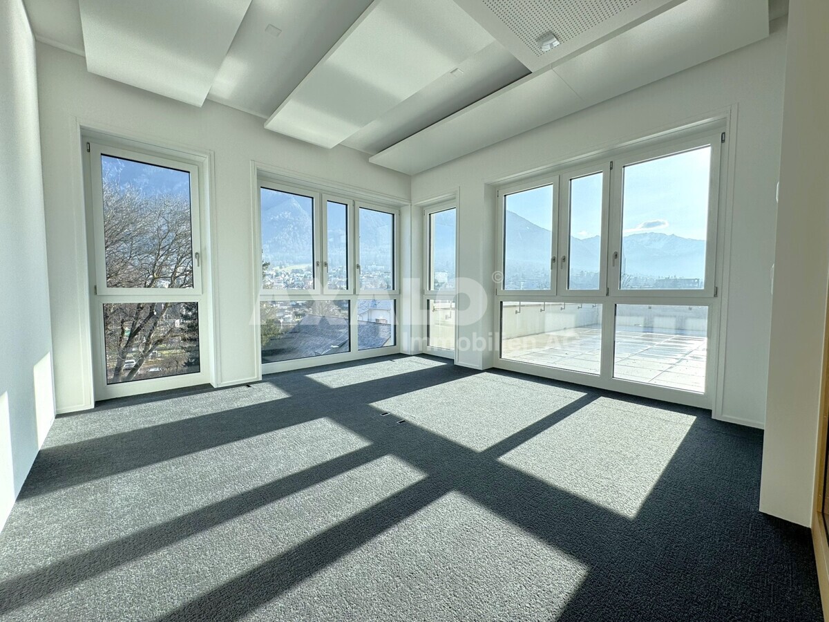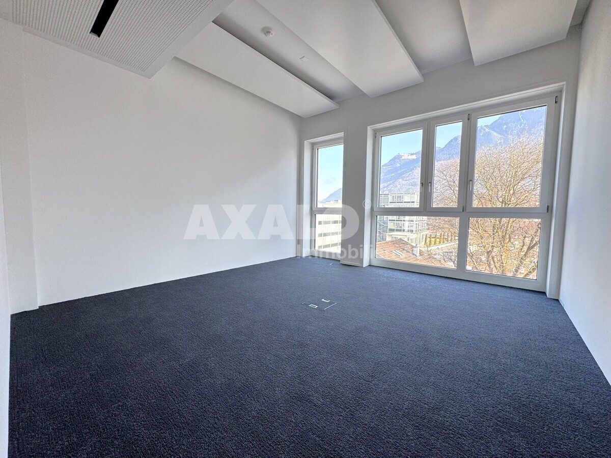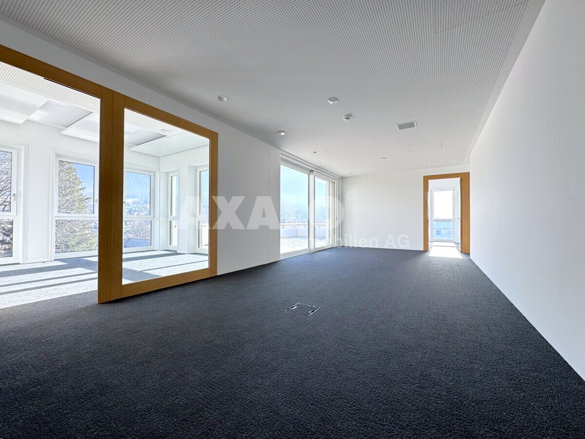 Die Bürofläche umfasst 102 m² und profitiert von zusätzlich weiteren 82 m² gemeinschaftlich genutzten Bereichen (anteilsmässig), darunter ein bedienter Empfang, einige Sitzungszimmer sowie eine grosszügige Cafeteria. Insgesamt ergibt sich eine Fläche von 184 m².